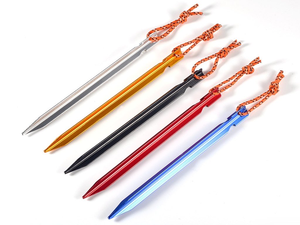 Las estacas ultraligeras de aluminio para tienda destacan por su resistencia, que apreciarás en terrenos más duros, y su peso de solo 13 g/unidad, que valorarás especialmente en largas caminatas.