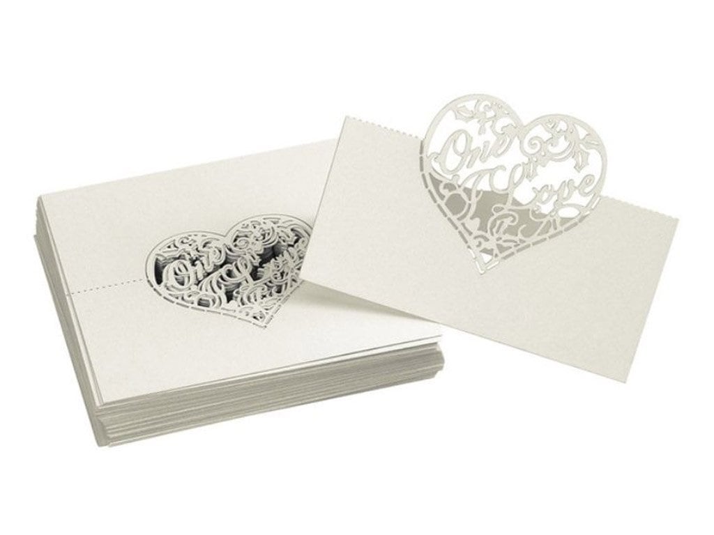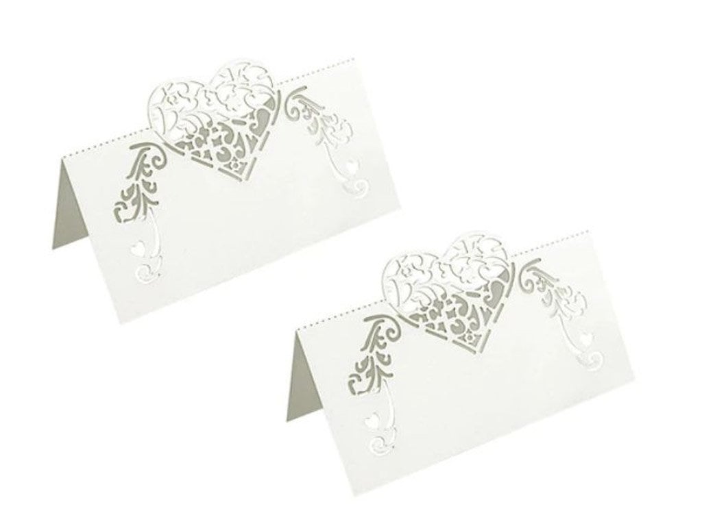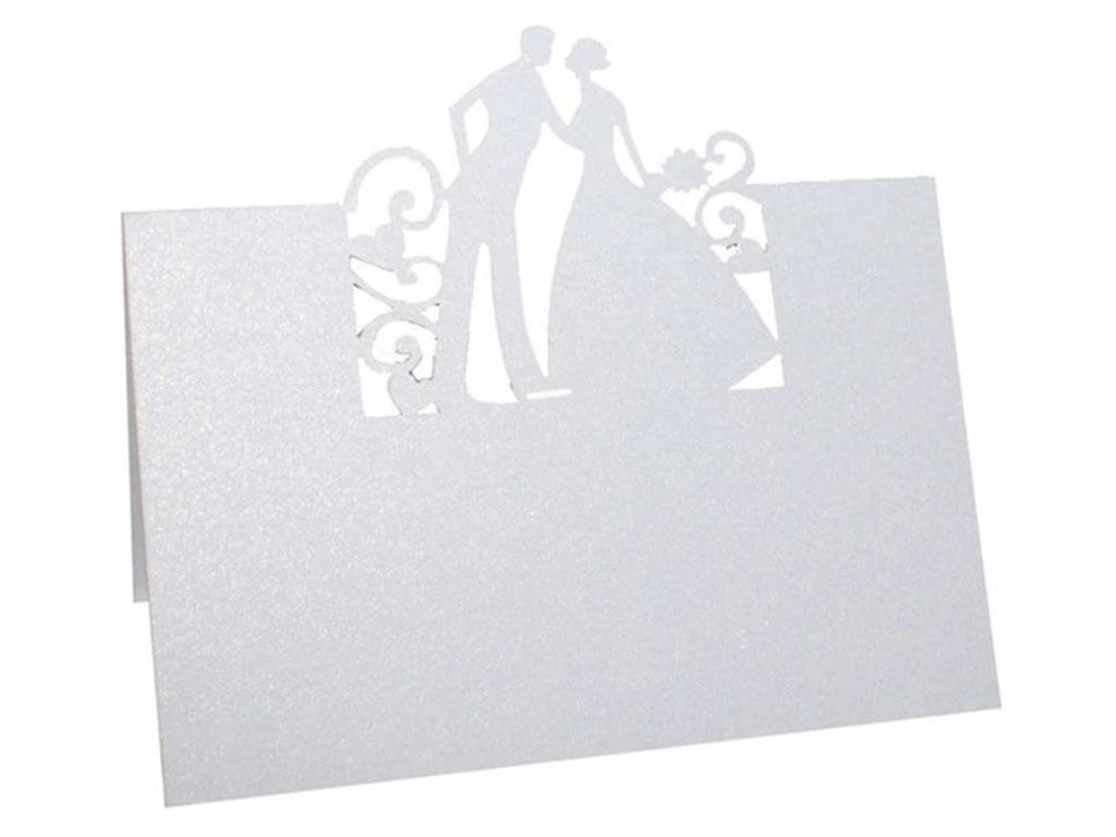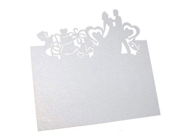 Tarjetas de mesa para bodas con corazón, recién casados, palomas y otros motivos de boda en acabado perlado de varios colores. Las tarjetas de boda son un complemento perfecto para la mesa de bodas si planeas crear un orden de asientos.