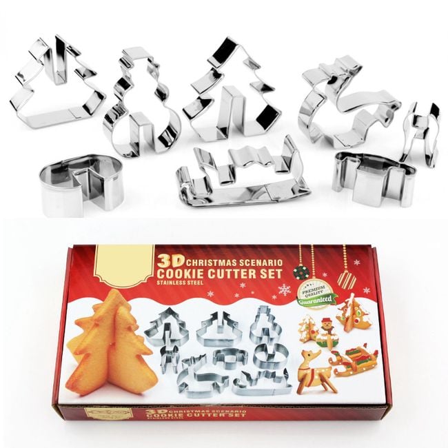 Viva unas fiestas mágicas con las hermosas formas de las galletas navideñas. El set de cortadores incluye un árbol de Navidad, un muñeco de nieve, un ciervo y un trineo. Cada cortador tiene una segunda parte para crear galletas en 3D. El set también es adecuado como regalo para sus seres queridos que disfrutan horneando delicias.