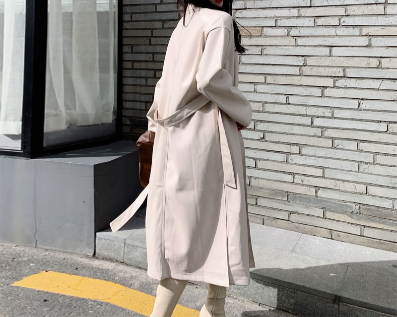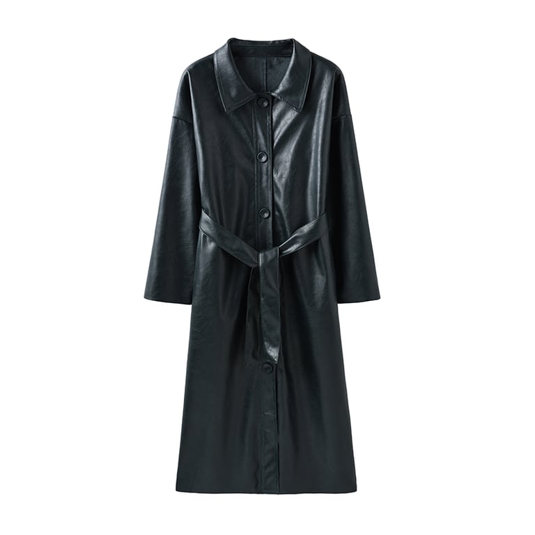 Abrigo largo de cuero con cinturón