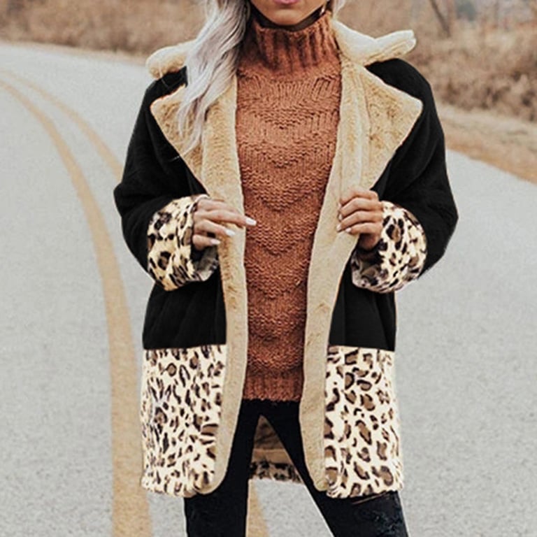 Abrigo de invierno cálido para mujer con estampado de leopardo.