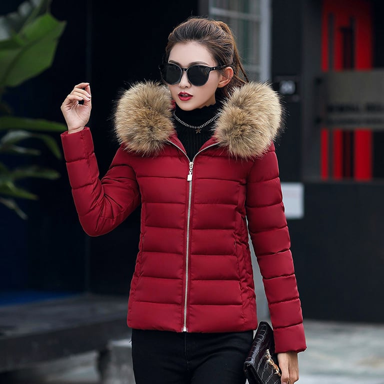 Abrigo de invierno plus size con pelaje Zuzana – burdeos