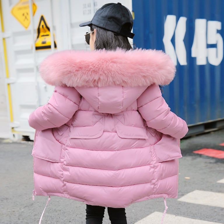 El abrigo de invierno para niña con un gran cuello de piel proporcionará a su niña suficiente calor y comodidad.