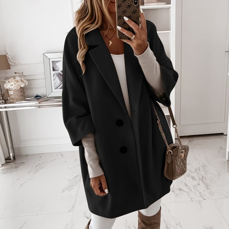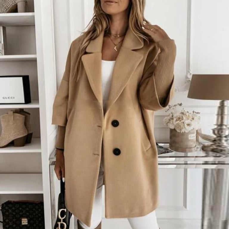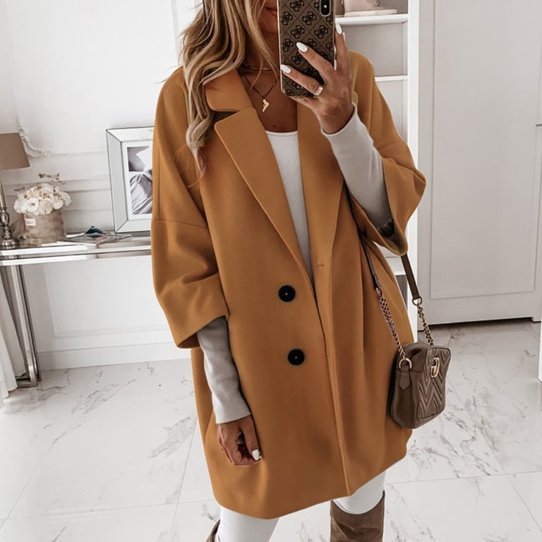 • Etiquetas: abrigo de mujer, abrigo cálido, botones, gran cuello, abrigo elegante, mangas cortas