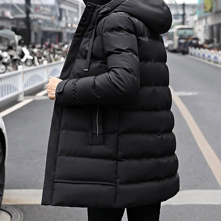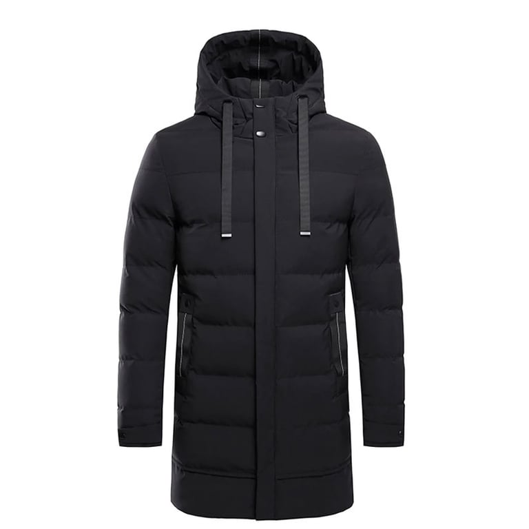 Chaqueta de invierno acolchada para hombre. La chaqueta tiene cierre de cremallera, capucha ajustable con cordones y cierre en el cuello con dos botones a presión. Dos bolsillos laterales con cremallera. Ligera, de corte más largo. Disponible en tres colores.