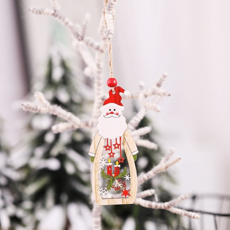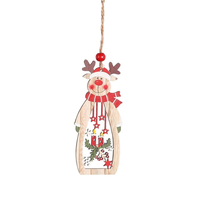 Adorno navideño colgante tallado en madera.