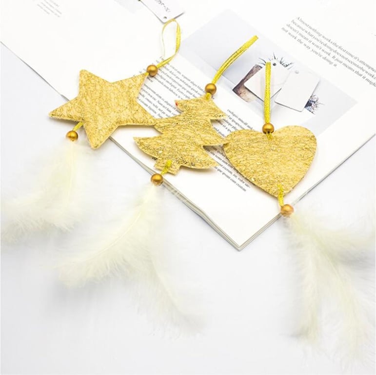 Conjunto de adornos navideños para colgar con suaves plumas.