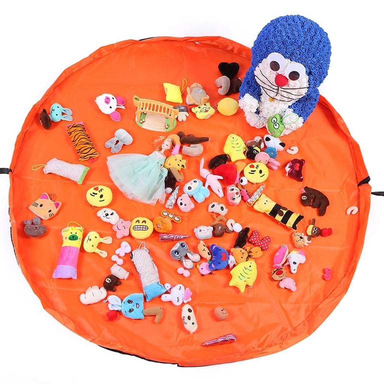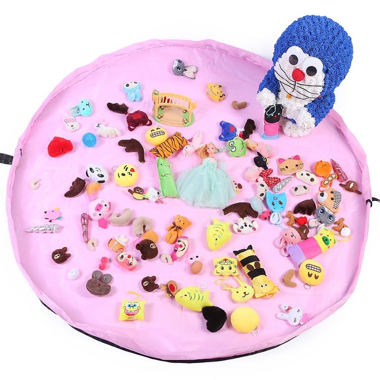 2 en 1 – manta de juego y bolsa para almacenar juguetes. ¡Se acabó el largo proceso de recoger los juguetes de los niños – puedes recogerlos rápidamente con la bolsa! Ideal para excursiones – puedes transportar fácilmente los juguetes y el niño tendrá un lugar para jugar.