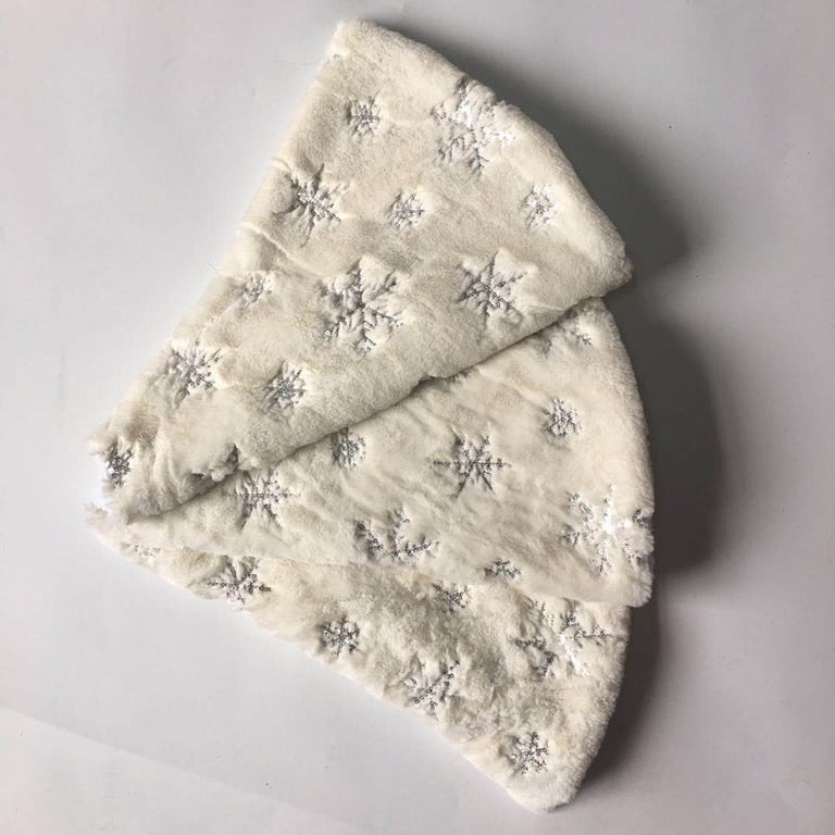 Alfombra navideña decorada con copos de nieve.