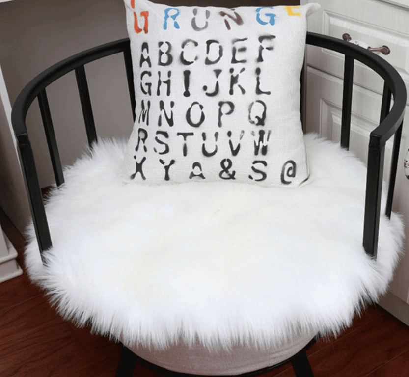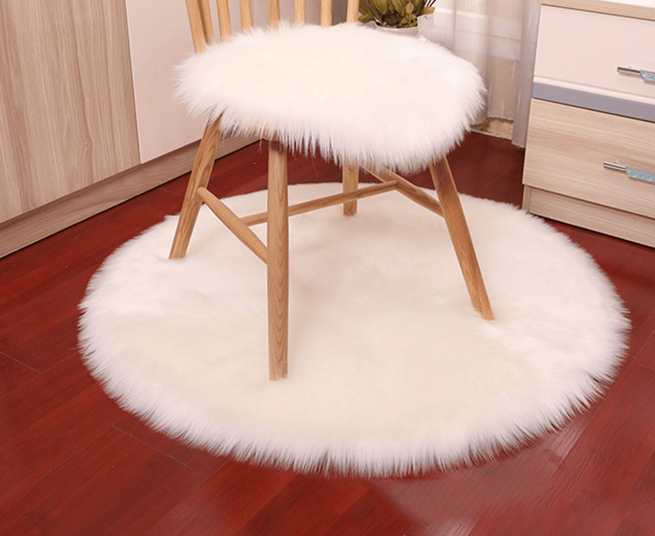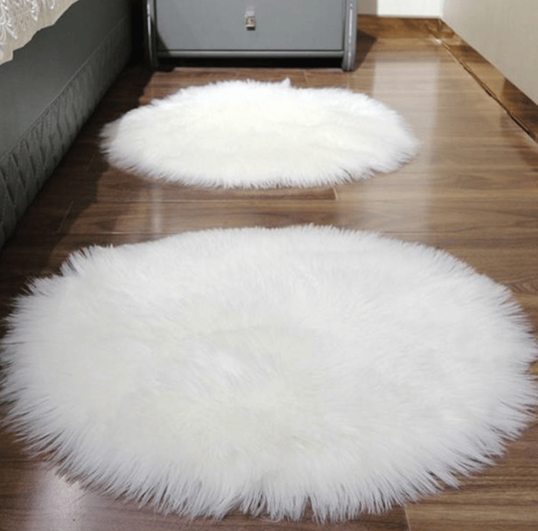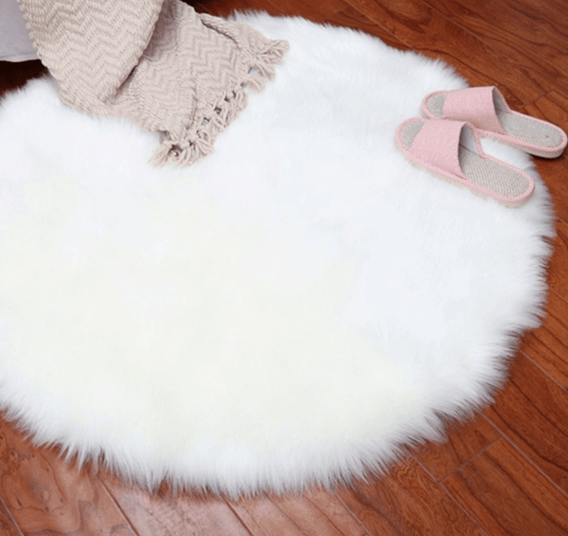 La alfombra tiene una forma redonda y su material es muy agradable al tacto.