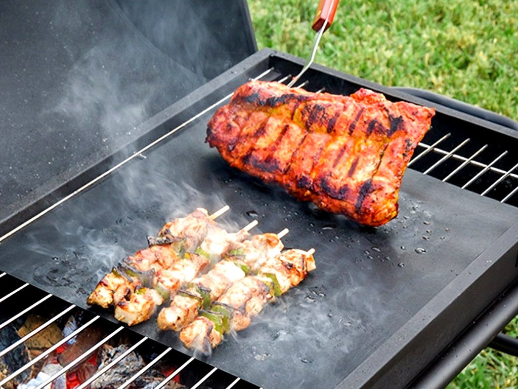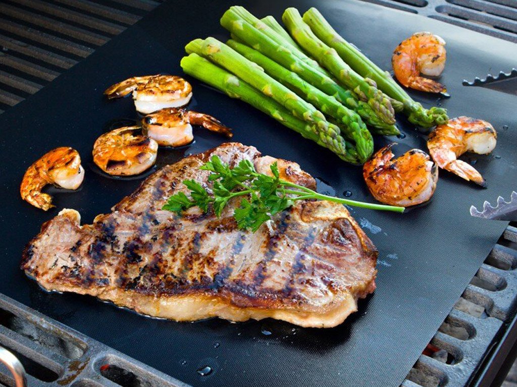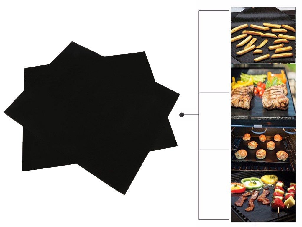 Consigue alfombrillas de teflón para asar y hornear. Son ideales para preparar carne y verduras durante las barbacoas de verano. La alfombrilla es resistente al calor hasta 380 °C. Puedes enrollar las alfombrillas de manera práctica y ahorran espacio.