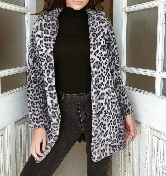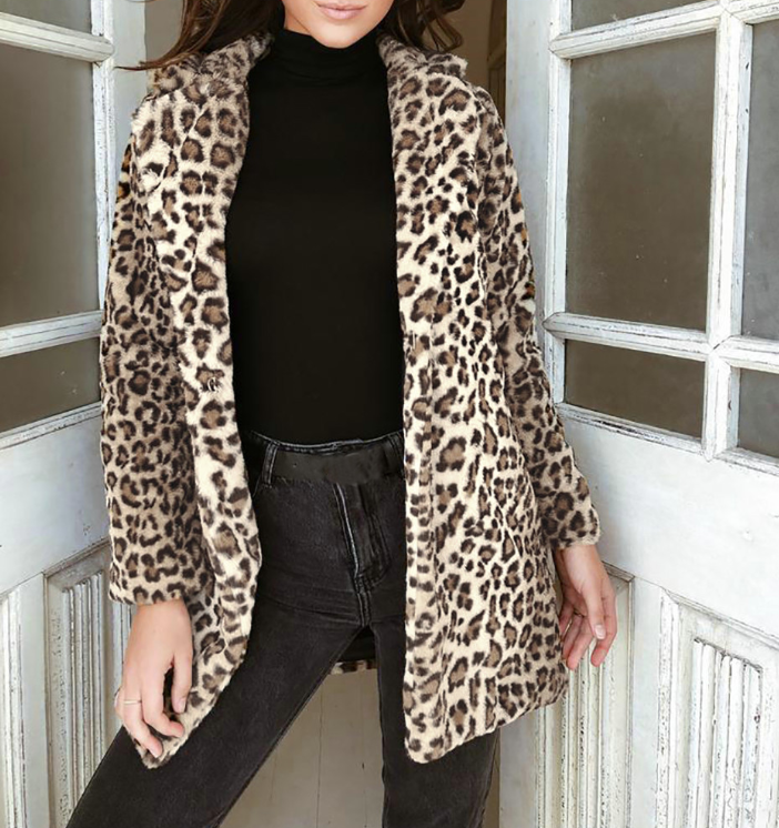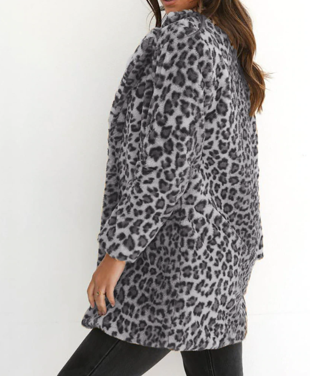 Amplia chaqueta de leopardo de mujer en estilo oversize con bolsillos.