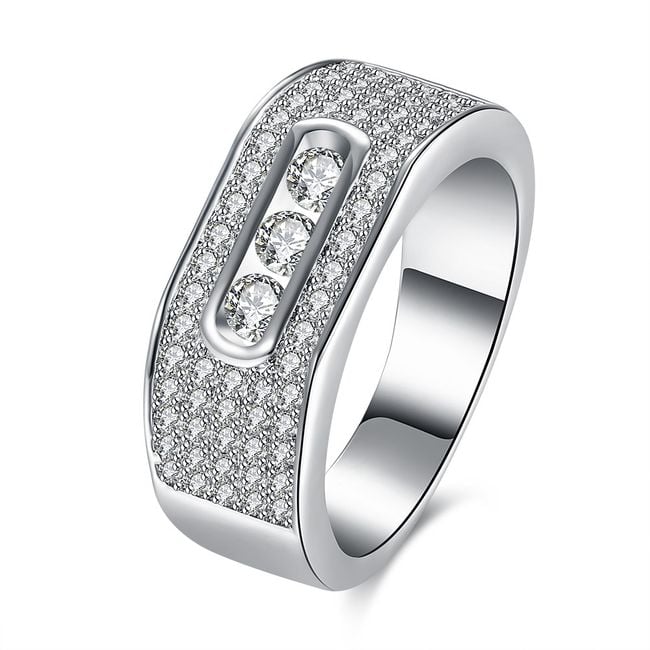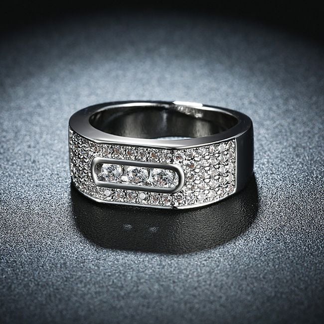 Un hermoso anillo alegrará a las damas en cualquier ocasión. El anillo cuadrado está adornado con varias piedras. Gracias a su aspecto elegante, será un complemento elegante para cada mujer.