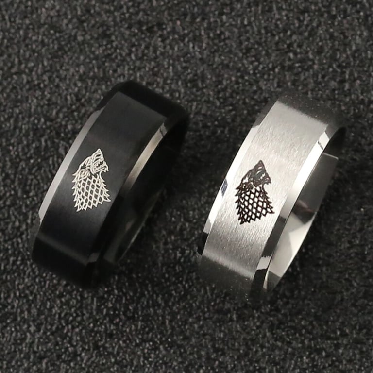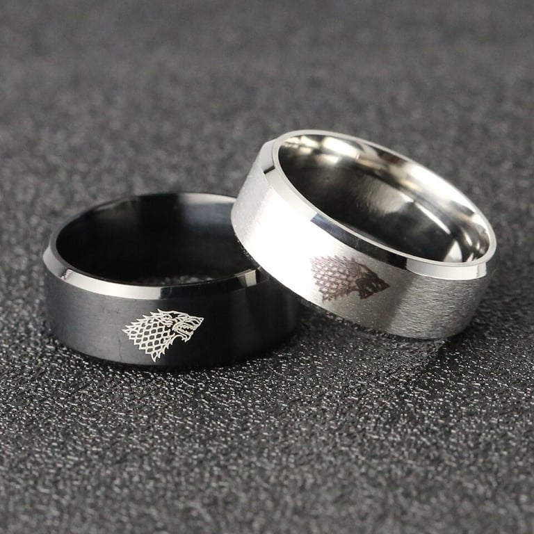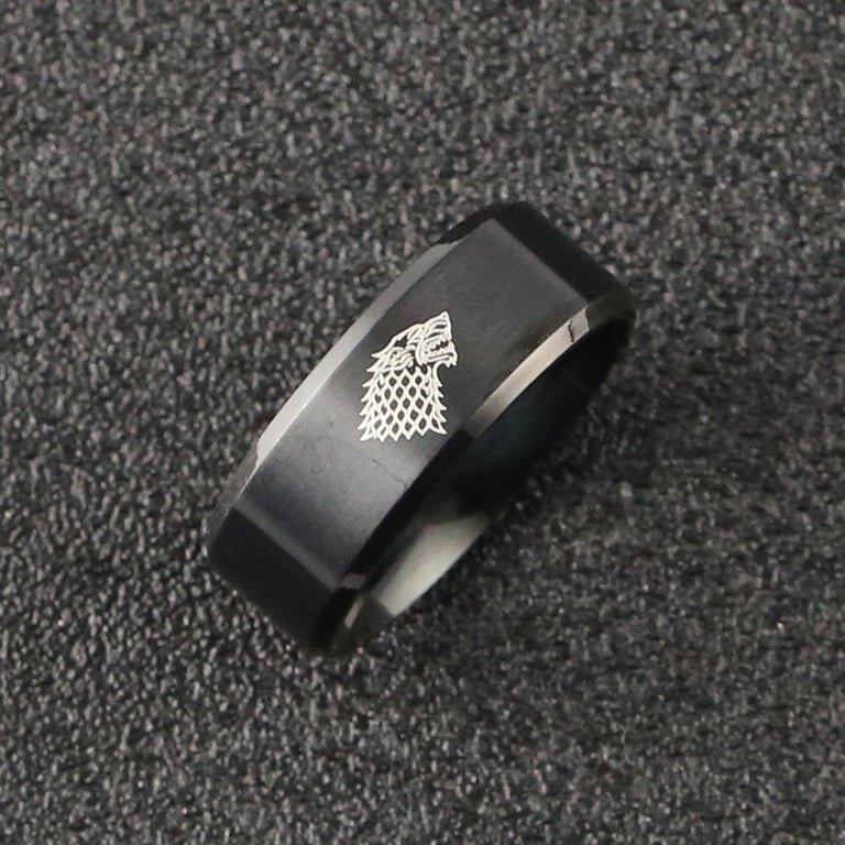 Anillo de acero con motivo de lobo Juego de Tronos