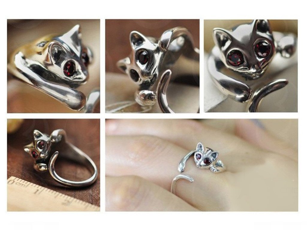 ¿Te gustan los anillos? ¿Eres amante de los animales? Entonces seguramente te encantará este anillo con un diseño original de gatito. Disponible en varias opciones de color para los ojos.