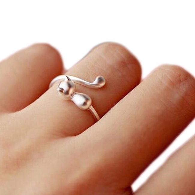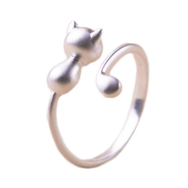 El anillo es ajustable y parece un gato que se enrolla alrededor de tu dedo, tiene un color plateado y combina con cualquier ropa.
