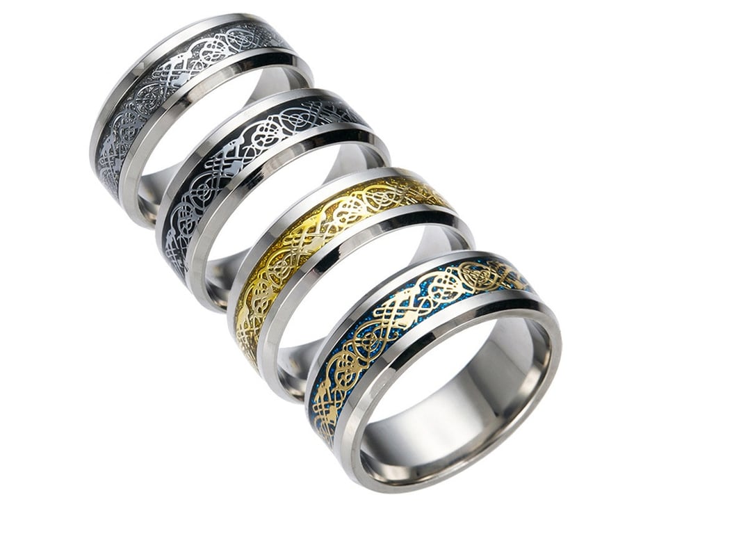 Este anillo de hombre con un ornamento colorido alegrará a cualquier hombre.