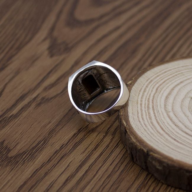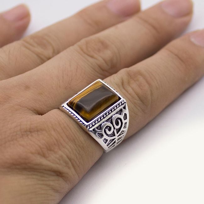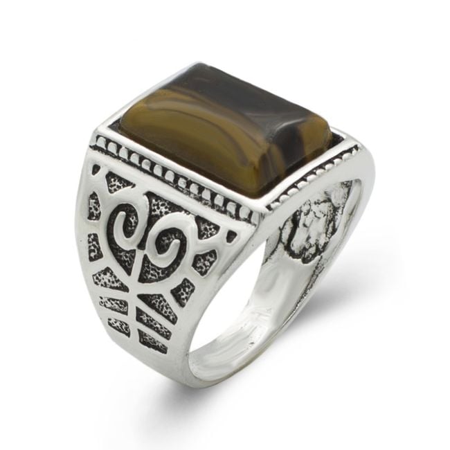 Anillo vintage para hombre con piedra marrón.
