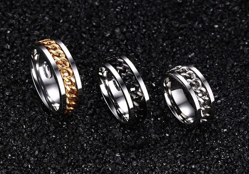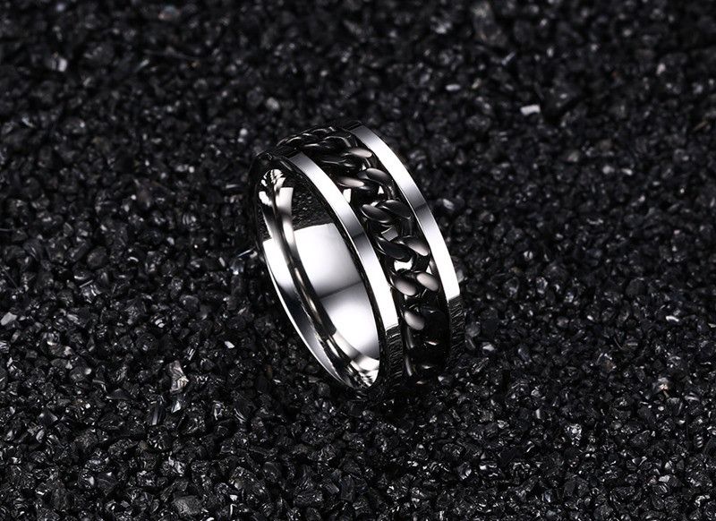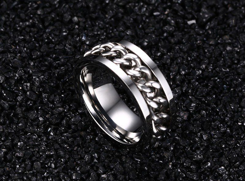 Este anillo está hecho de acero inoxidable y será un adorno para cualquier hombre.