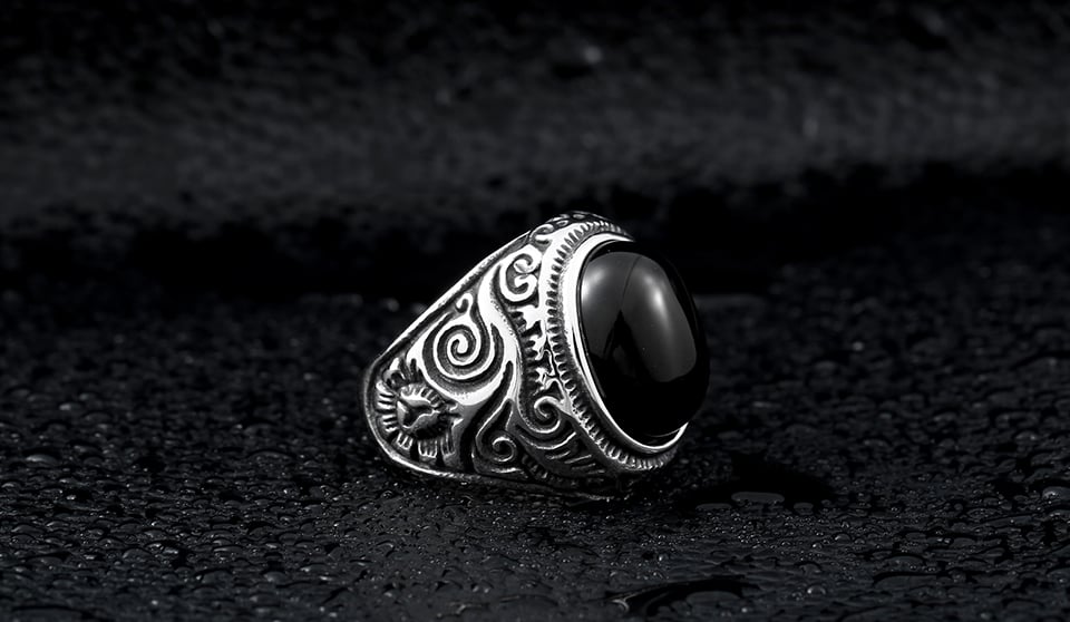 Tenemos para ti o para tus seres queridos un anillo estiloso con piedra en estilo gótico.