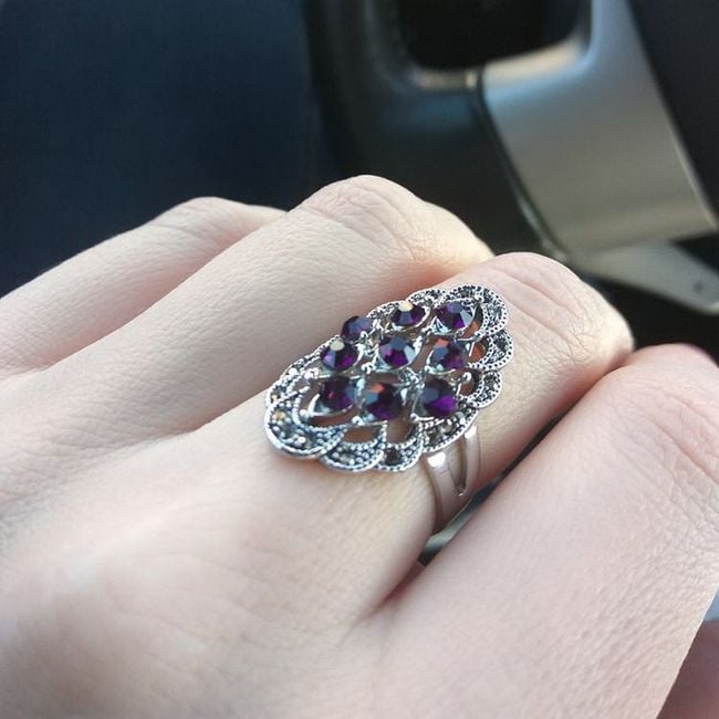 El anillo está adornado con hermosas piedras y es adecuado para el uso diario.