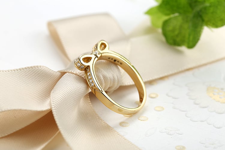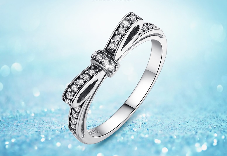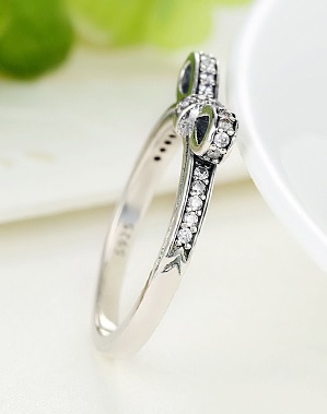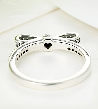 Un lazo muy bonito, no muy grande, decorado con circonita es un hermoso adorno de este anillo.