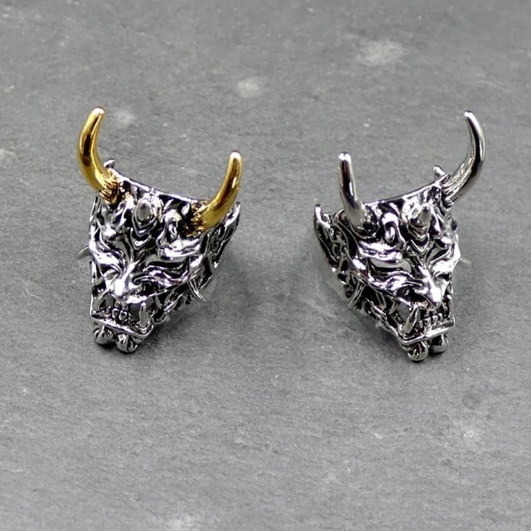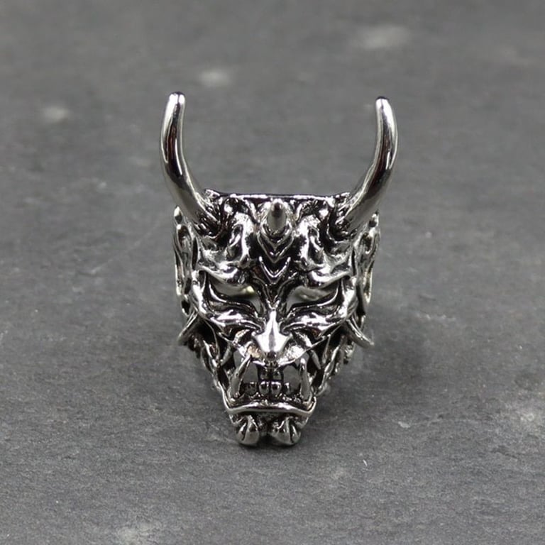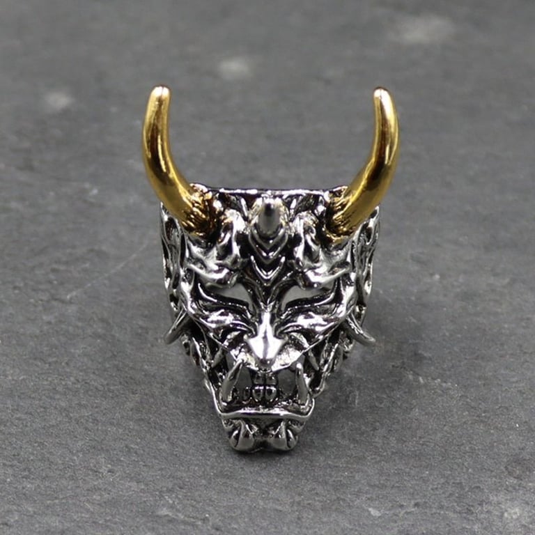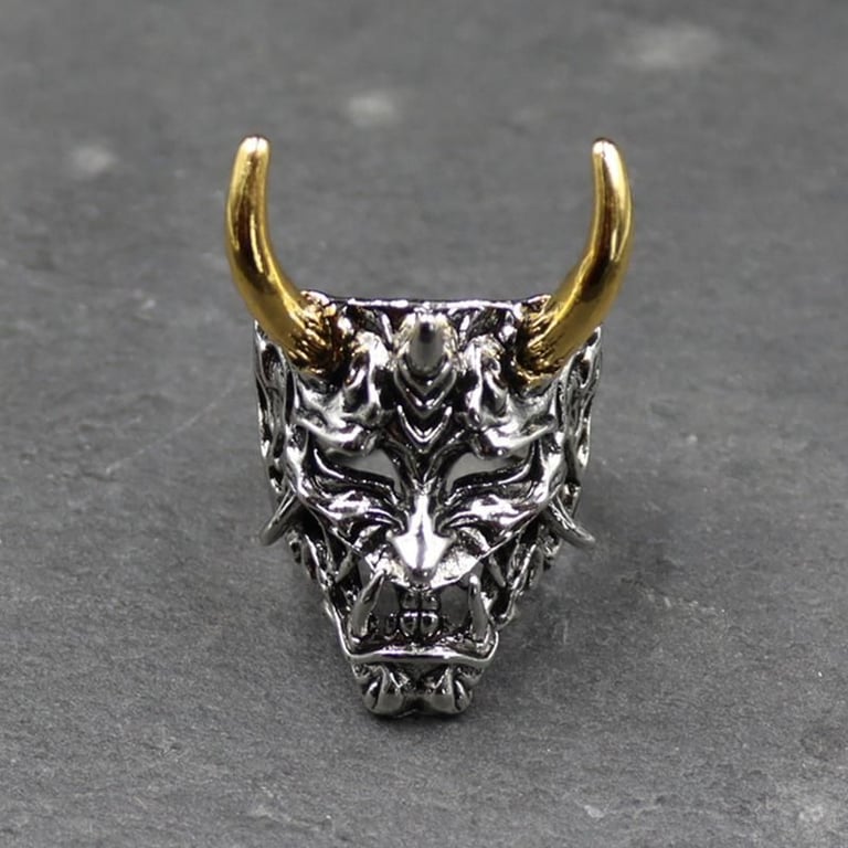 Lujo anillo masculino con máscara de samurái en color plateado o plateado dorado.