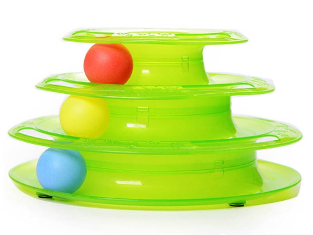 Diviértete con tu gato con la ayuda de los anillos con pelotas, un juguete genial para tus gatitos y gatos grandes. Puedes añadir niveles individuales según lo desee tu gato. En la parte inferior, el juguete está equipado con tapones de goma para que no se deslice sobre superficies lisas mientras juega. ¡Consigue un juguete espectacular para tu gato que le encantará!