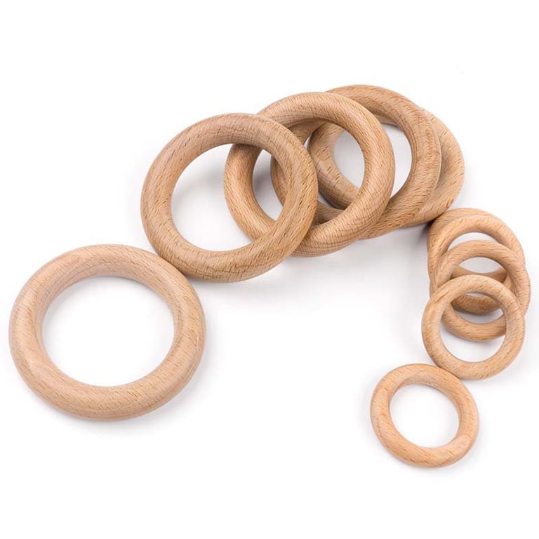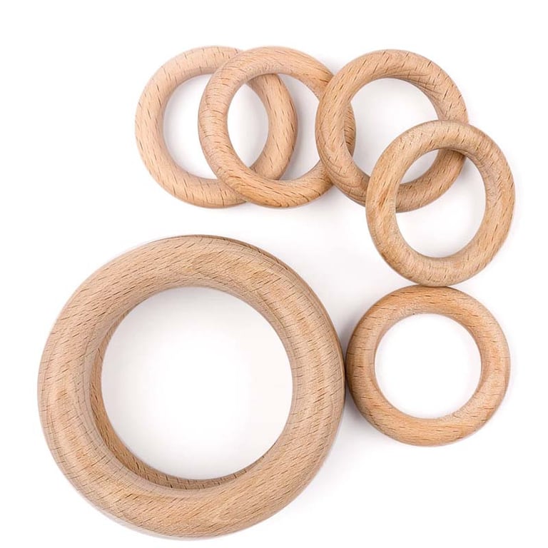 Anillos de madera para crear para los más pequeños, que pueden decorar perfectamente, por ejemplo, un sonajero.