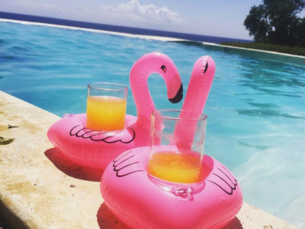 ¿Pasas mucho tiempo en la piscina o en la bañera? En el flamenco inflable, la piña, las cerezas y otros flotadores puedes dejar cualquier cosa que necesites tener a mano mientras nadas, como un vaso con tu bebida.