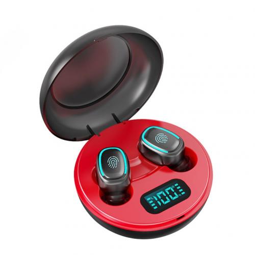 Auriculares bluetooth inalámbricos con estación de carga disponibles en cuatro colores: blanco, azul, rojo y negro. Los auriculares son muy prácticos y el estuche de carga muestra el porcentaje de carga de la batería.
