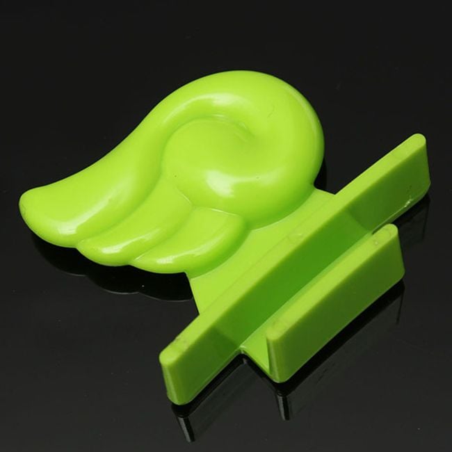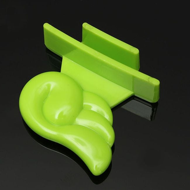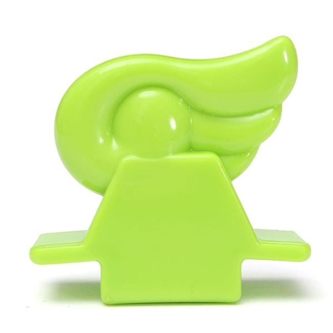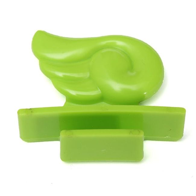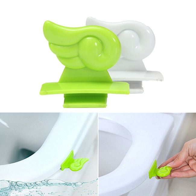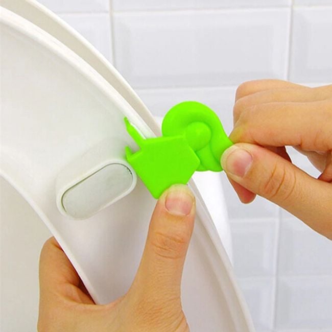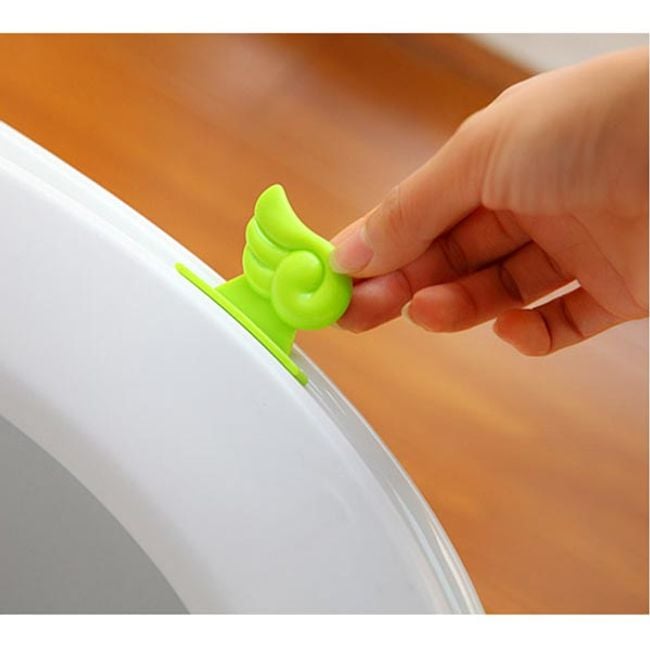 Este accesorio en forma de ala de color verde se utiliza para levantar la tapa del inodoro. Se adhiere fácilmente (con el borde adhesivo) a la superficie lisa y seca de la tapa.