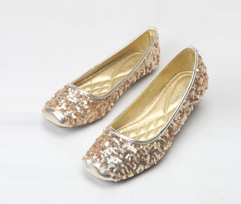 Estas bailarinas con lentejuelas son realmente elegantes y puedes llevarlas a cualquier lugar.