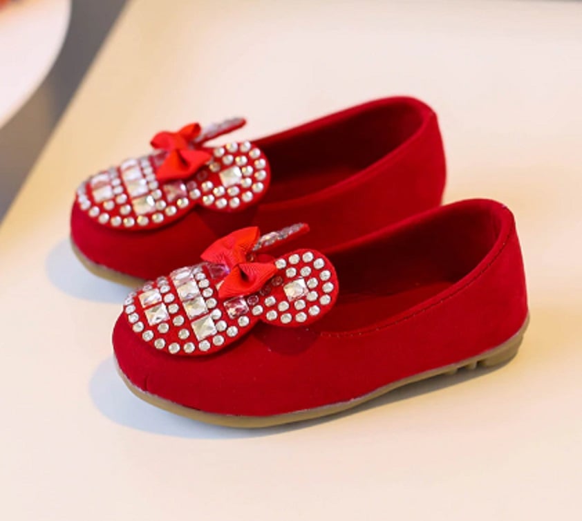 Las bailarinas para niñas decoradas con piedras brillantes y un lazo serán el favorito de todas las pequeñas.
