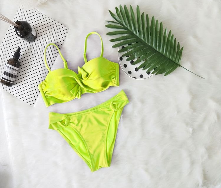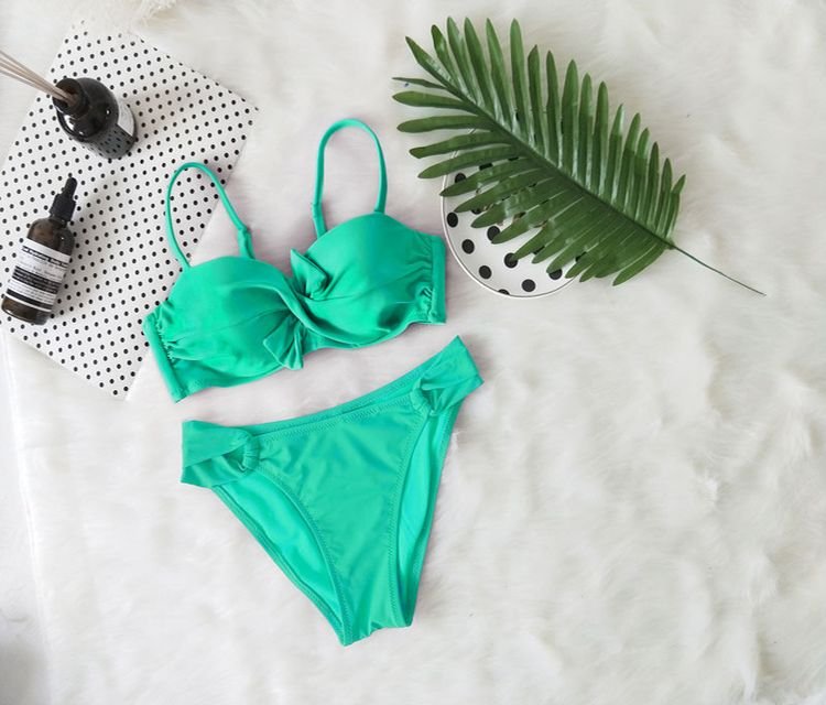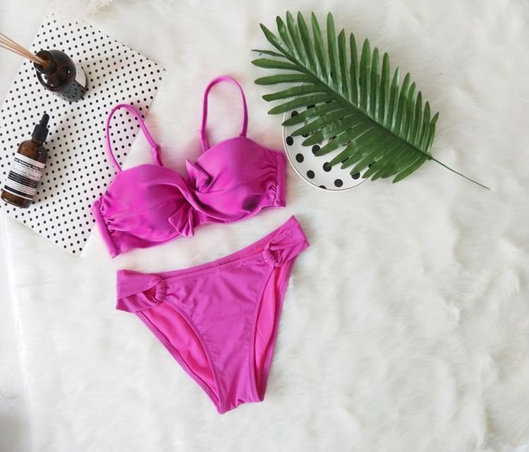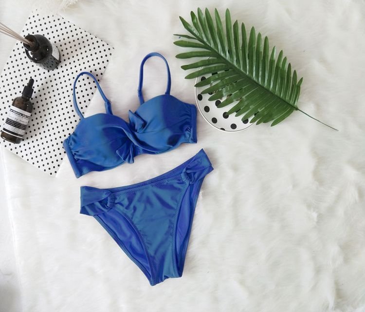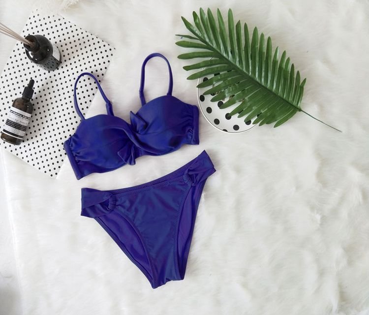 ¿Prefieres nadar en la piscina o en el mar? Da la bienvenida al verano y a las piscinas con un elegante bikini de dos piezas con nudo. Puedes elegir entre varias tallas; encontrarás una descripción detallada de las medidas a continuación.