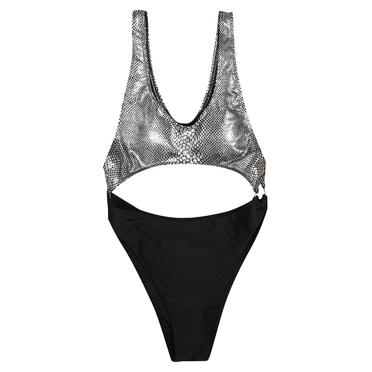 Traje de baño de una pieza asimétricos originales para mujer con estampado de serpiente y cortes