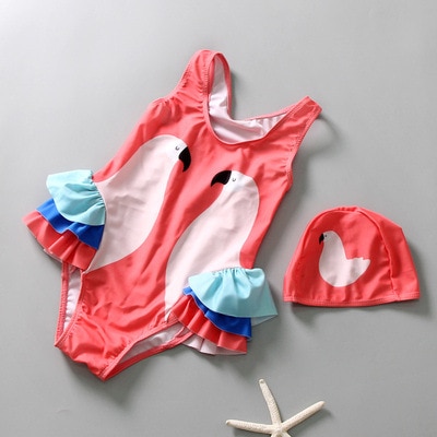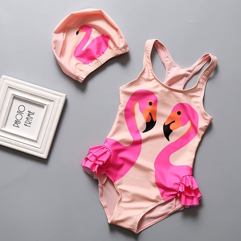 Traje de baño de una pieza para niña con gorro de natación