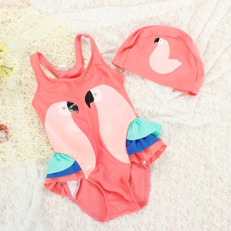 Traje de baño de una pieza para niñas con un lindo estampado y gorro de baño
