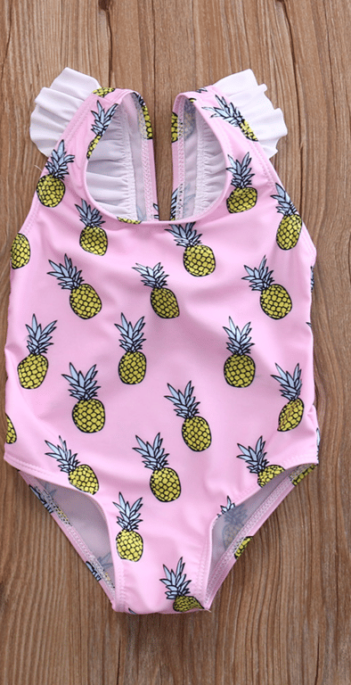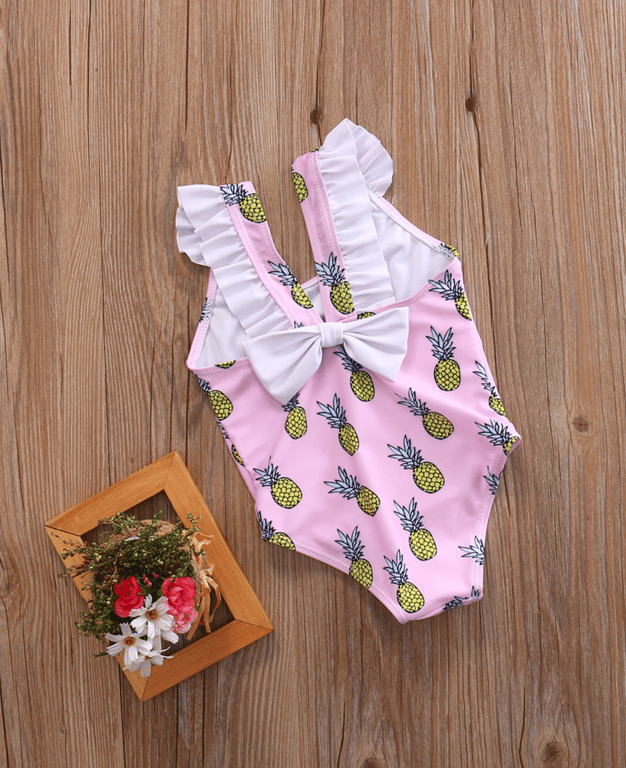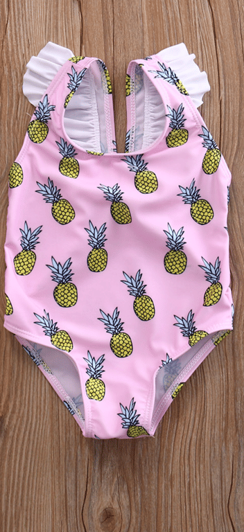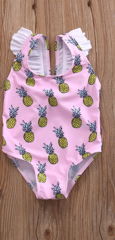 Traje de baño de una pieza para niñas con volantes y estampado de piñas