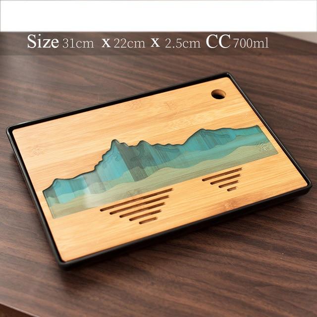 Bandeja de bambú para tazas con un hermoso diseño.