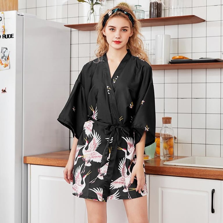Albornoz con motivos de aves exóticas en colores suaves para tu disfrute.