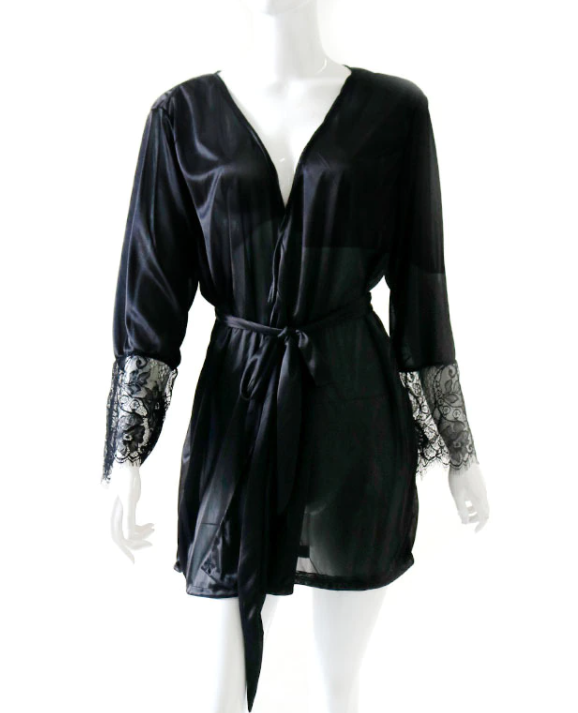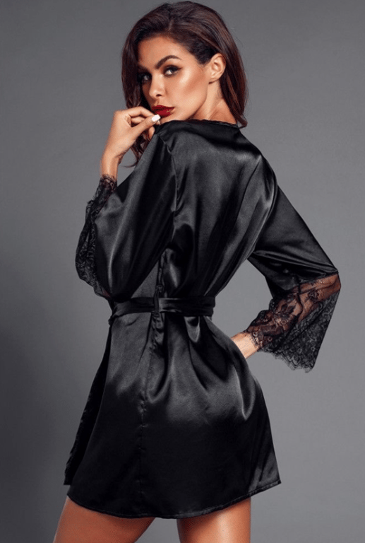 Albornoz sexy de satén para mujer con encaje