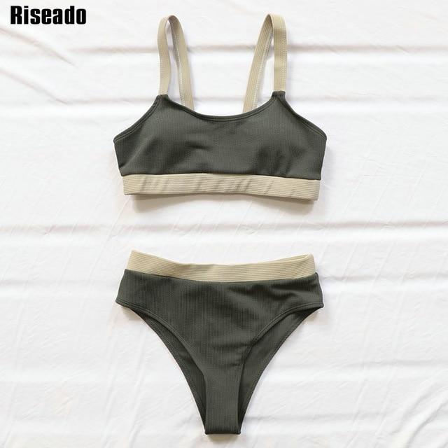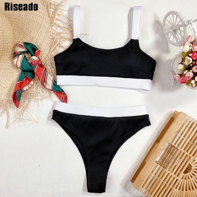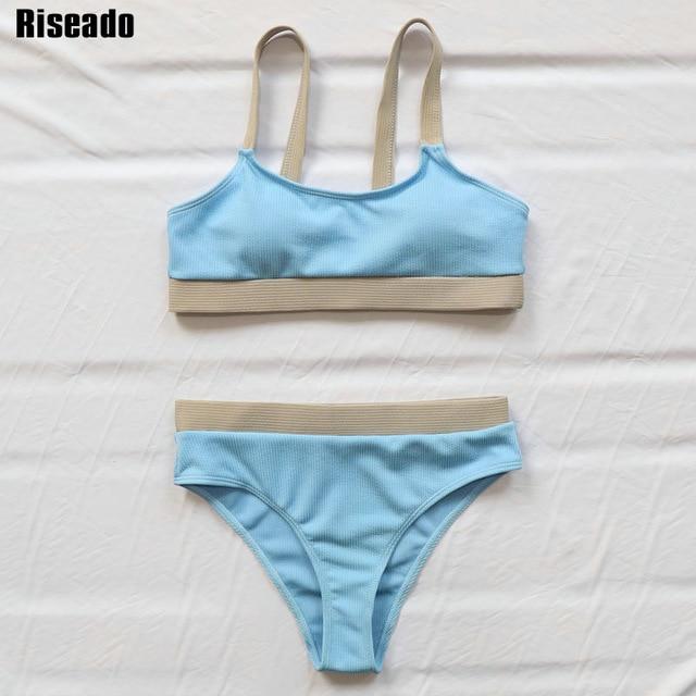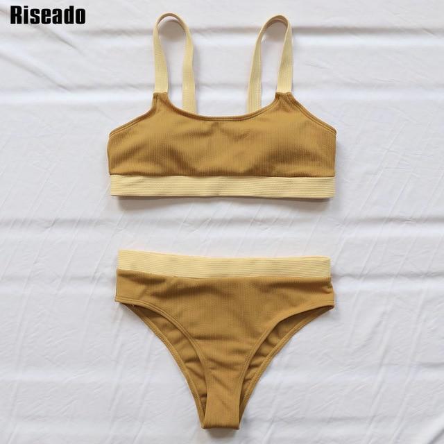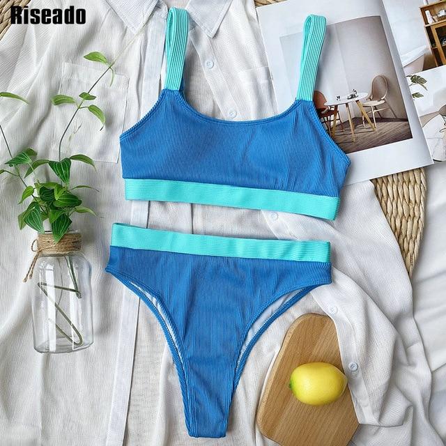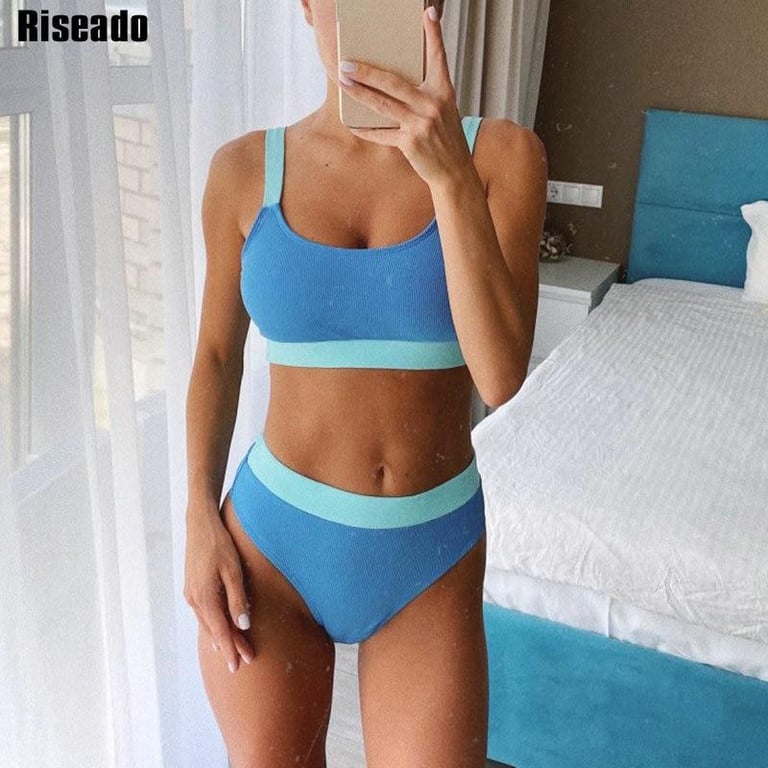 Bikinis de mujer de colores, fabricados en spandex y nylon. Parte inferior más alta y tirantes más anchos, por lo que se ajustan perfectamente.