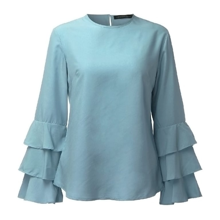 Blusa con mangas de volantes Rae - azul claro