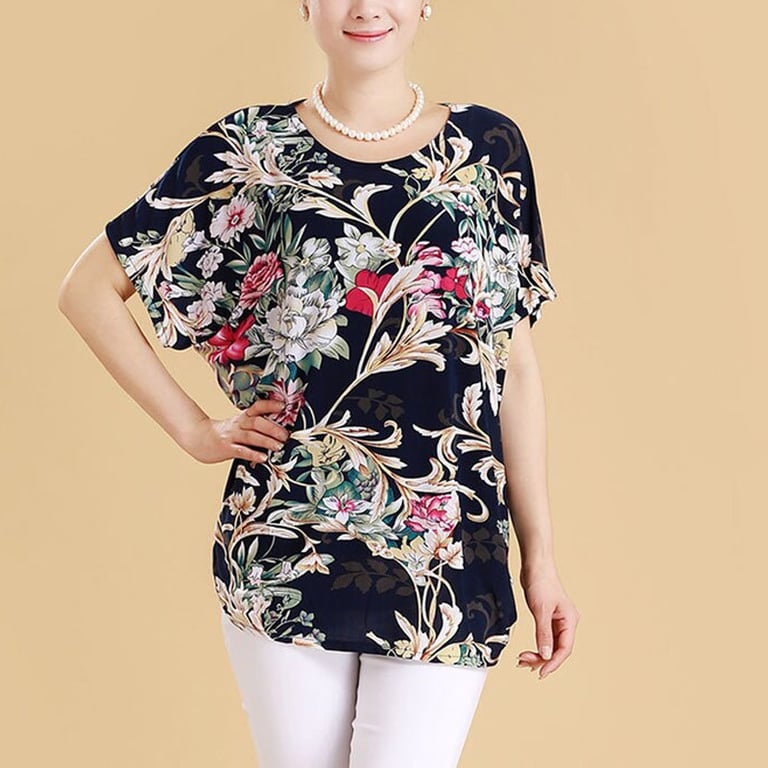 Blusa de mujer con mangas cortas y escote redondo. Corte holgado. Estampado con un colorido diseño floral.