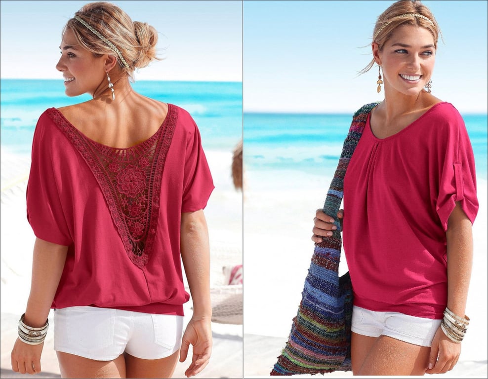 Blusa de mujer con encaje en la espalda – roja