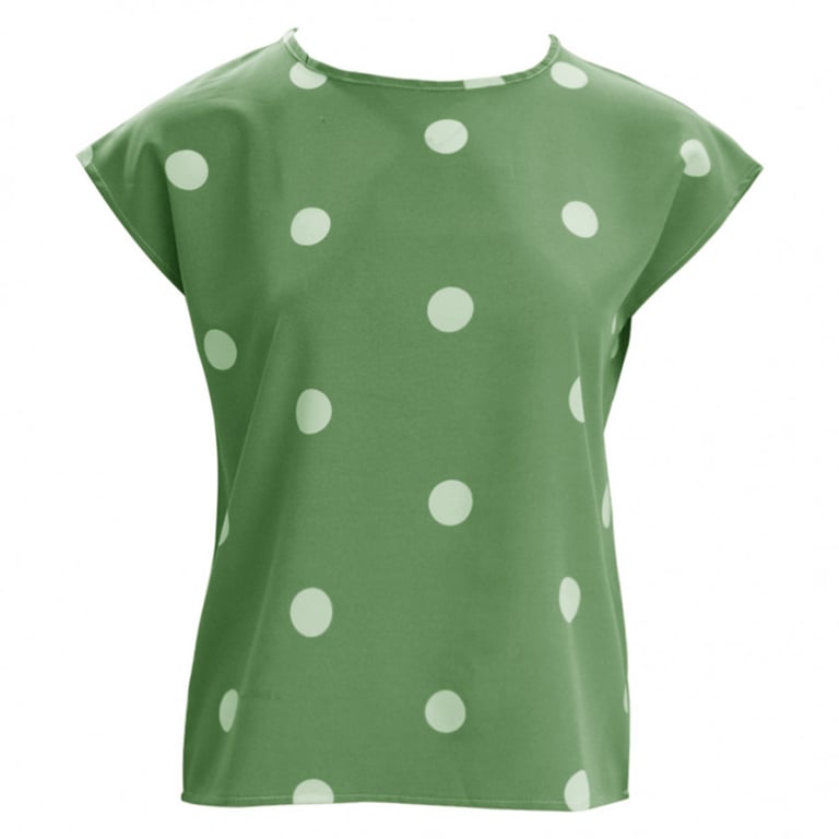 Blusa de mujer de manga corta y corte suelto. Escote barco. Estampado con patrón de lunares.