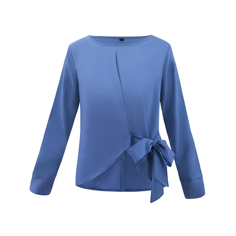 Blusa elegante para mujer con escote redondo y mangas largas. Cierre lateral con lazo. Disponible en varios colores.