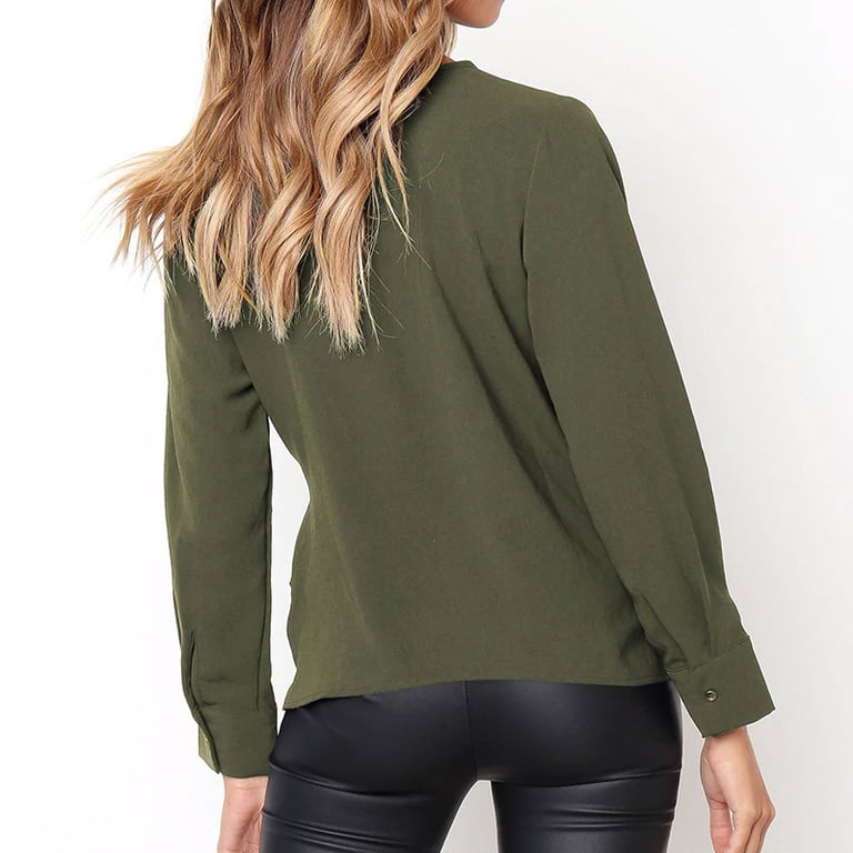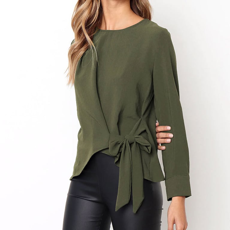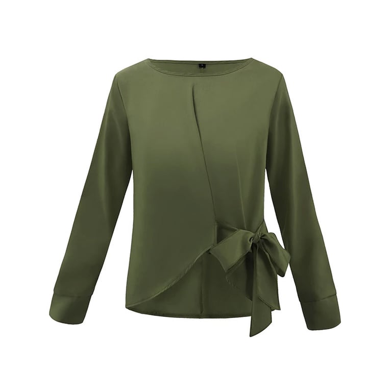 Blusa elegante de mujer con escote redondo y mangas largas. Cierre con lazo en el lado. Disponible en varios colores.