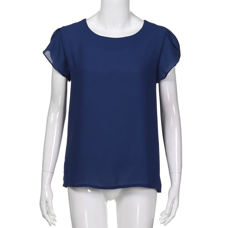 Blusa de mujer con escote redondo. La blusa tiene mangas cortas con fruncido. Corte holgado. Material ligero y transpirable. Disponible en varios colores.